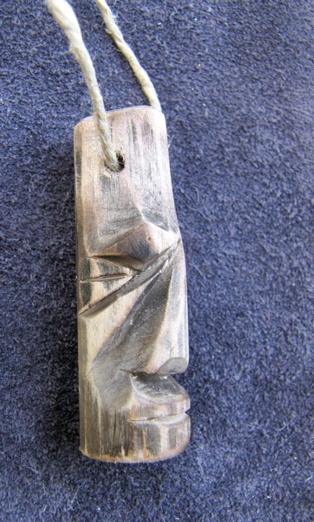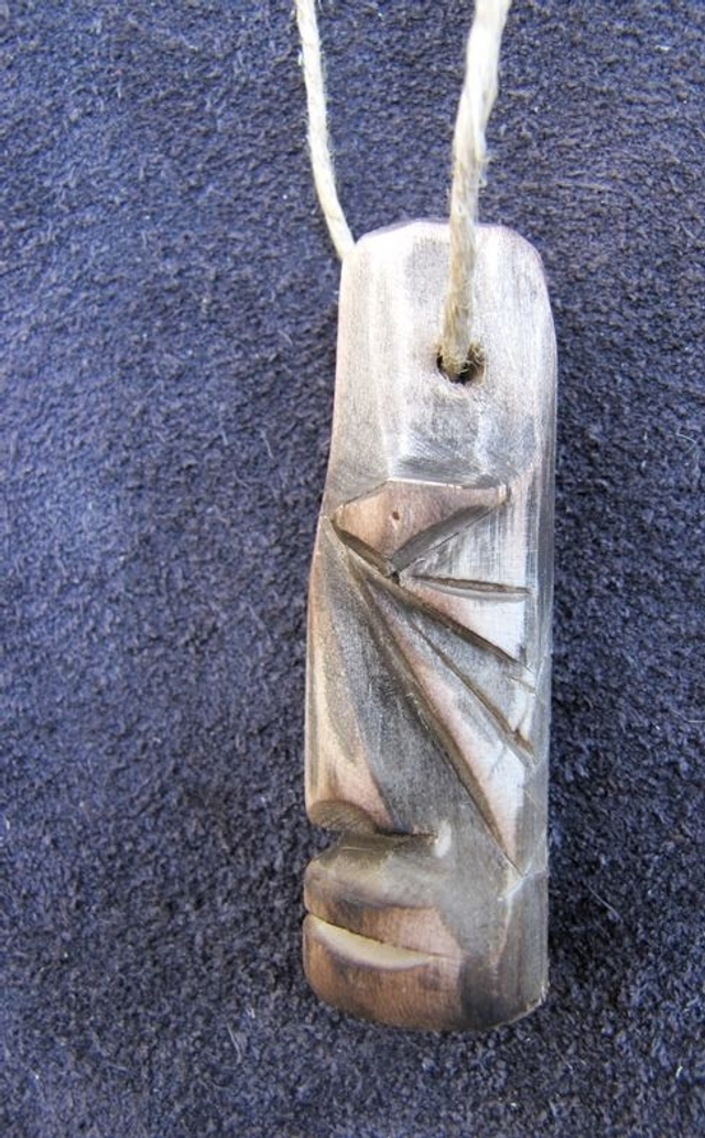 Pendentif en bois de saule, sculpté au couteau.