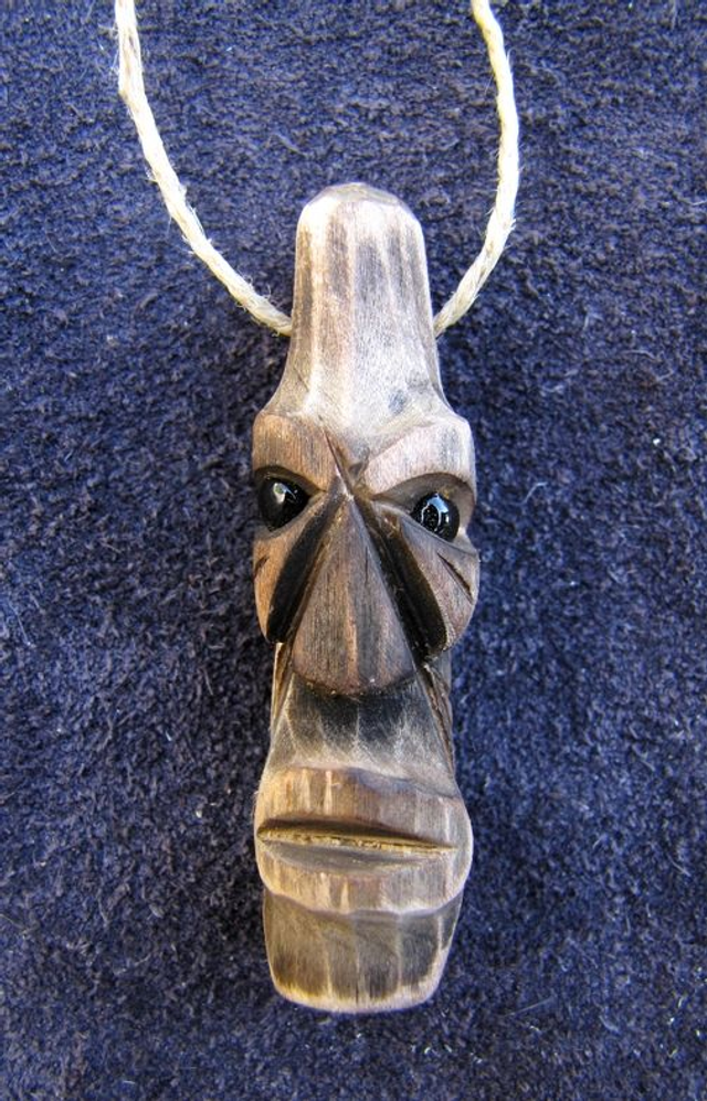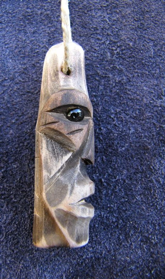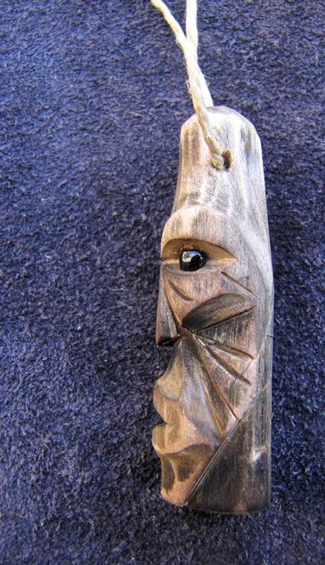 Pendentif en bois de saule, sculpté au couteau.