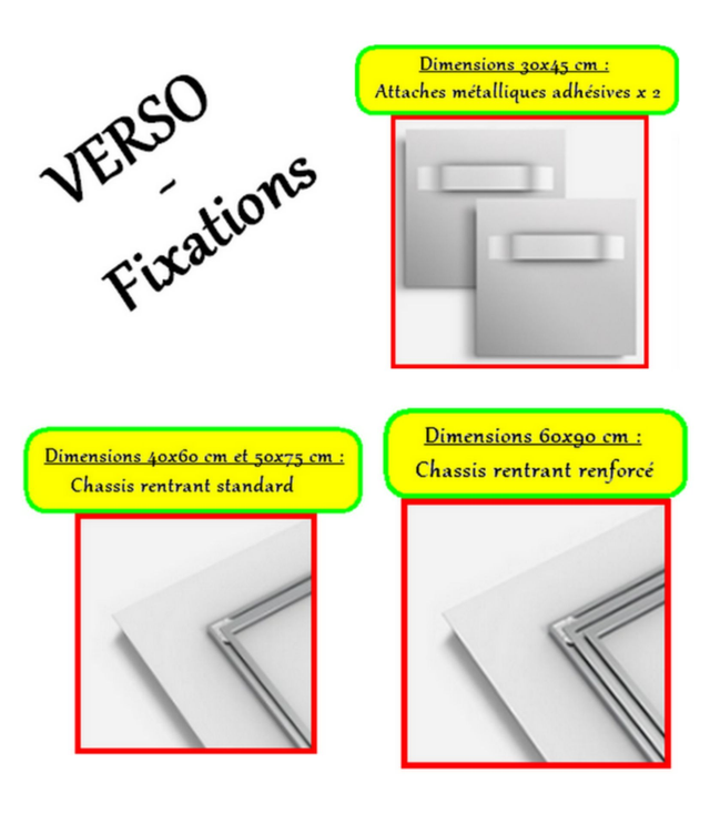 4 dimensions sont disponibles : 30x45 cm - 40x60 cm - 50x75 cm - 60x90 cm.